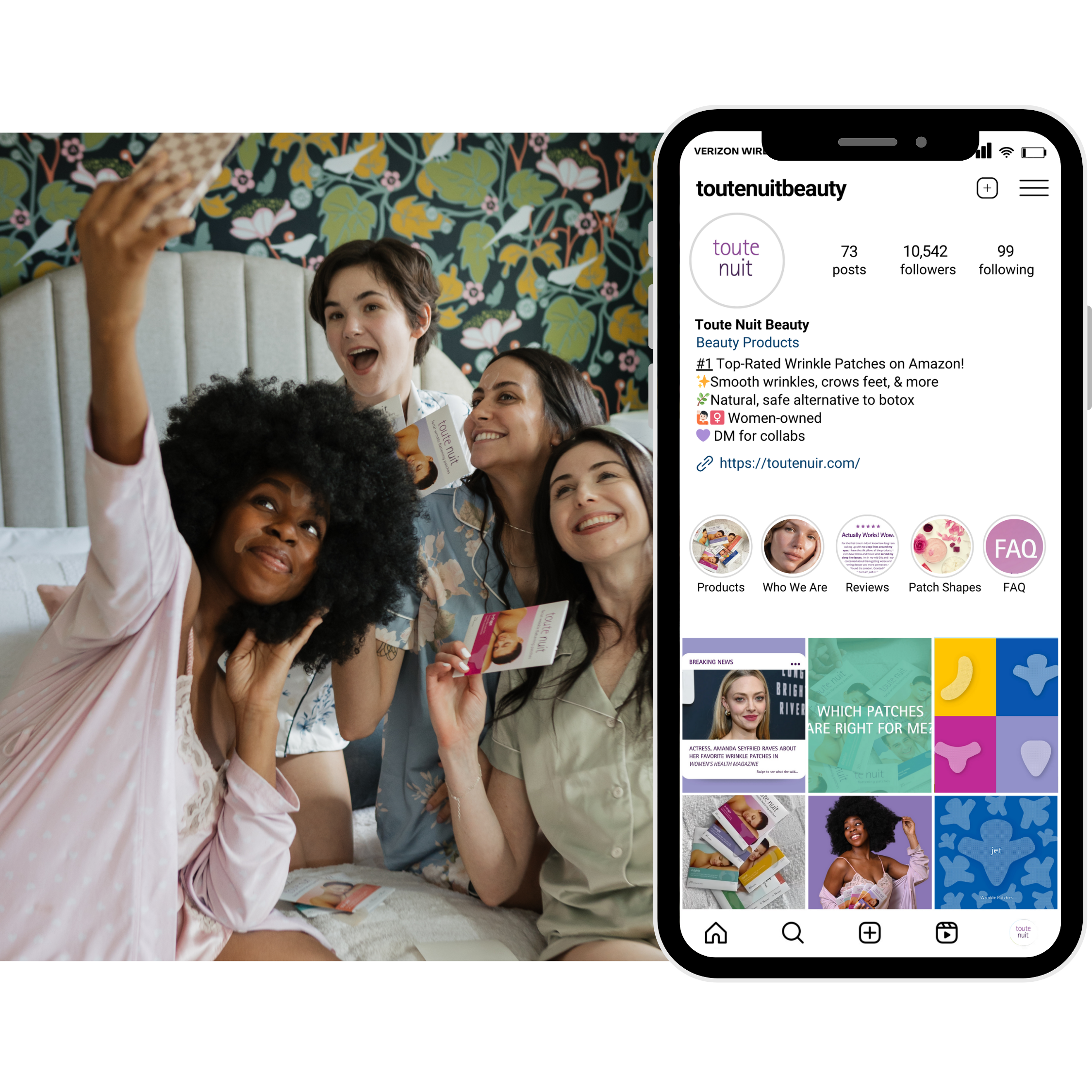 Toute Nuit is an all-natural wrinkle patch skincare brand offering a non-invasive alternative to Botox. Backed by strong Amazon sales and a growing library of customer success stories, the product already had proven demand — but little to no presence on social media. The brand needed to translate its existing credibility into a visual, lifestyle-driven digital presence that could build awareness, trust, and long-term brand loyalty beyond marketplaces.